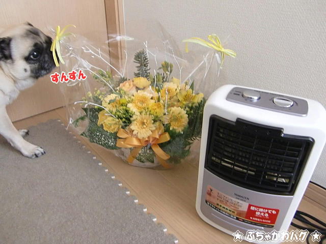 写真は送別会で頂いたお花とリクエストしたファンヒーターです。