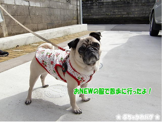 おNEWのイチゴちゃんの服着て散歩に行ってきました