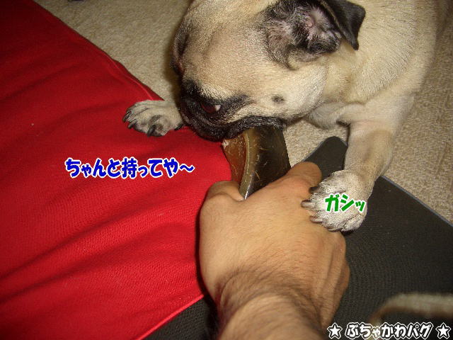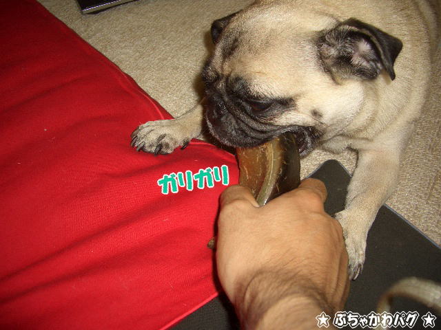 ヒヅメを咥え、とーちゃんの目の前にポトっと落とします(笑)