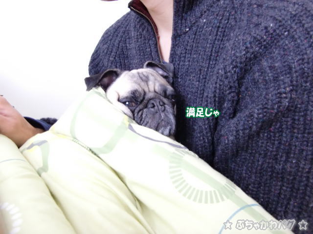 食べたあとは、とーちゃんの上に乗って満足な顔でーす