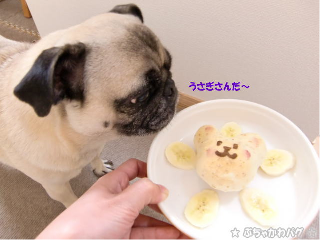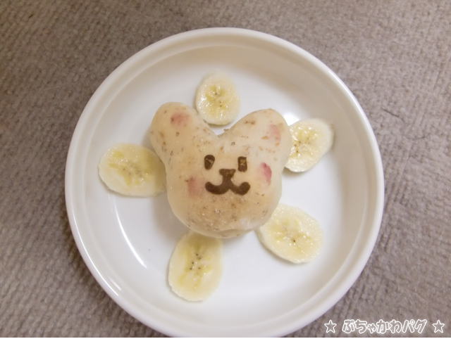 年末にカフェで買って冷凍していたわんこパンにバナナを添えてあげました。
