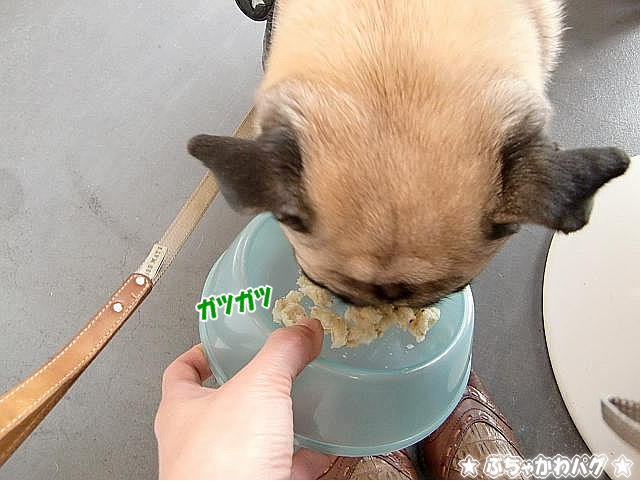 最初、かーちゃんが入れ物を持って食べさせてたんだけど、